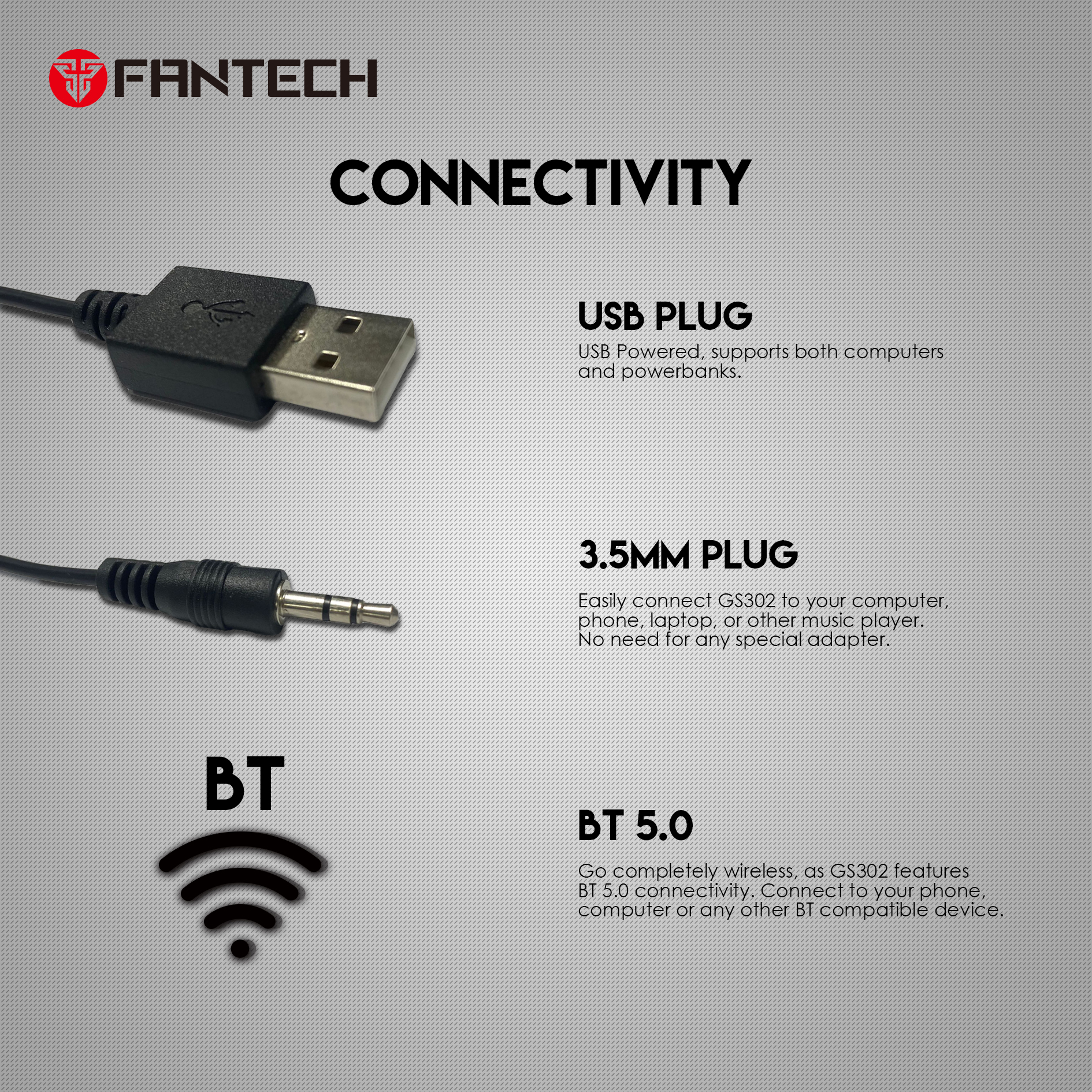 Fantech GS302 Alegro zvučnik dolazi sa dvostrukom konekcijom, 3,5 mm + USB ili Bluetooth-om.