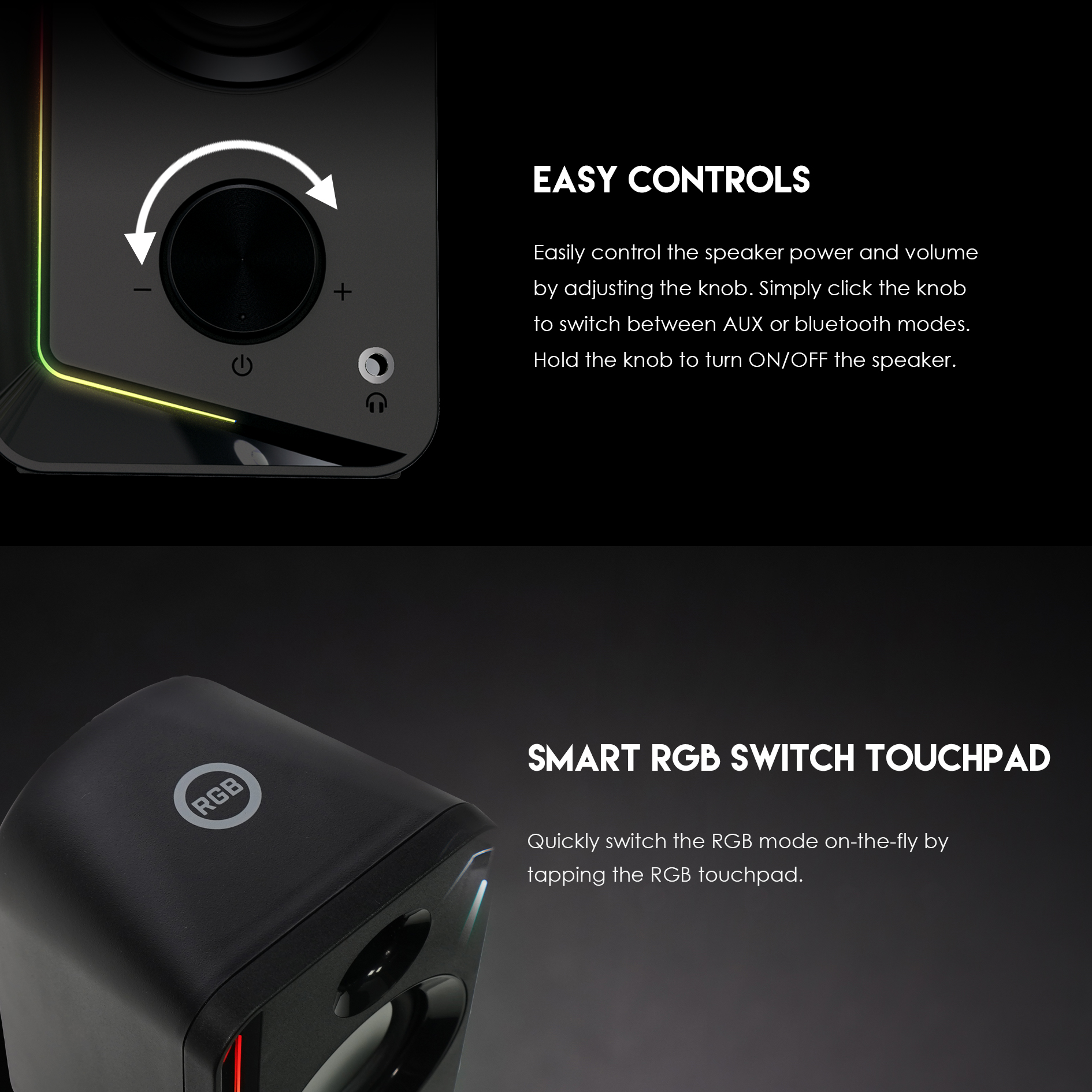 Držite dugme da biste uključili/isključili zvučnik i takođe brzo promente RGB režim na RGB tačped.