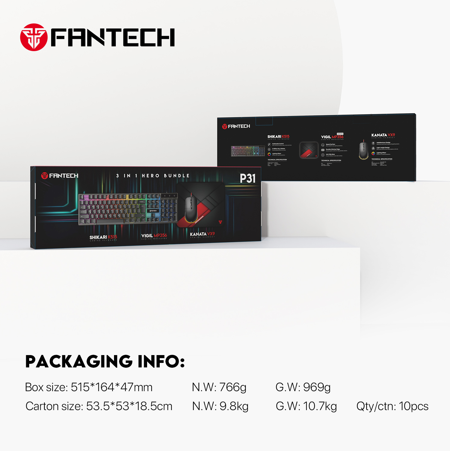 TIPKOVNICA ŽIČNA+MIŠ+PODLOŽAK GAMING COMBO POWER PACK FANTECH P31 HERO CRNI